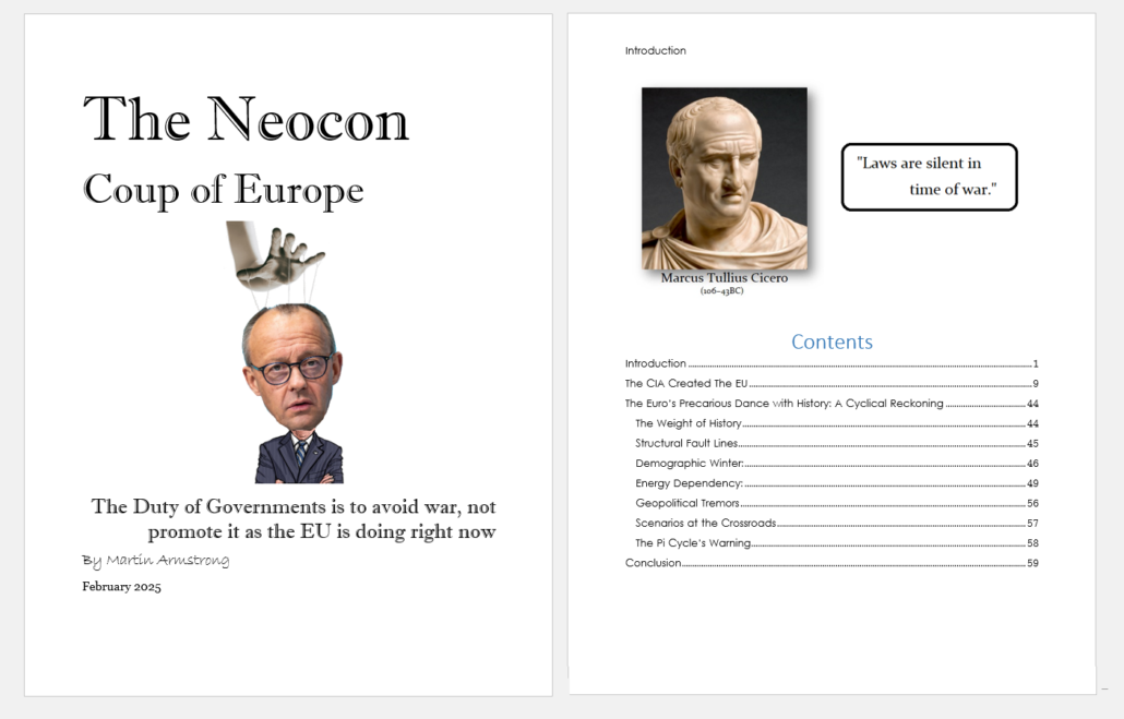In einem gestern veröffentlichten neuen Bericht legt Armstrong dar, warum es in Europa bald zu einem Krieg kommen wird. Armstrong führt aus:
