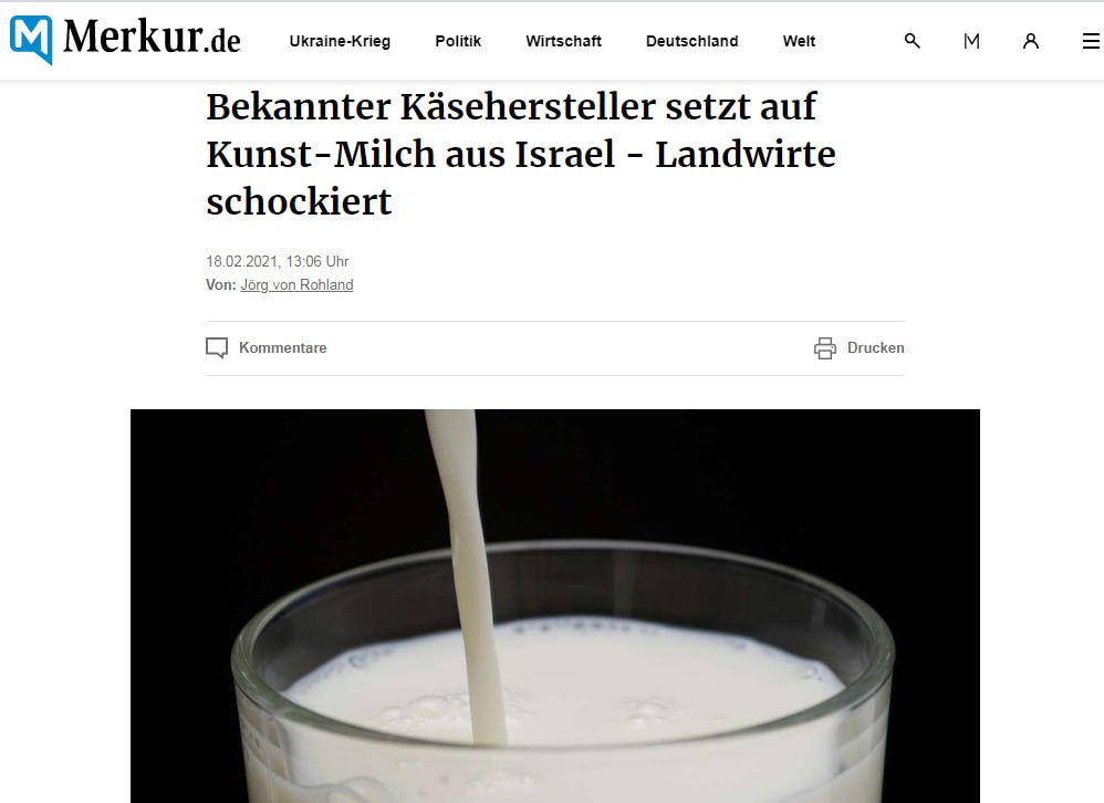 Die Firma Hochland beteiligt sich an der israelischen Firma „Remilk“, die damit wirbt, ohne jede Kuh Milch produzieren zu können. Der Käsehersteller sieht den neuen Rohstoff als Ergänzung für seine Produktpalette. Landwirte in der Region sind entsetzt.