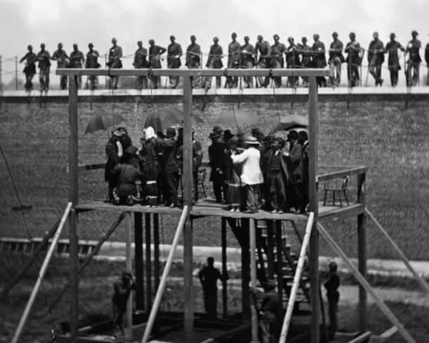 Trump könnte erwägen, sie genauso zu behandeln wie Präsident Andrew Johnson die Verschwörer hinter dem Attentat auf Abraham Lincoln. Die acht Angeklagten (mit Ausnahme von John Wilkes Booth, der in einer Scheune in Virginia aufgespürt und erschossen wurde) wurden von einer neunköpfigen Militärkommission im alten Arsenal von Washington, D.C., verurteilt. Vier wurden gehängt, drei zu lebenslanger Haft und einer zu sechs Jahren Haft verurteilt.