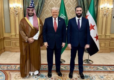 Gastgeber der Veranstaltung, begeistert von der Wiederaufnahme der Beziehungen, war der saudische Kronprinz Mohammed bin Salman (später auch bekannt als MBS), während der türkische Präsident Recep Tayyip Erdogan, ein großer Beschützer der inzwischen ehemaligen Aufständischen von Al Sharaa, per Telefonanruf aus der Ferne an dem Treffen teilnahm. Laut dem Weißen Haus diktierte Trump dem Führer des neuen Syriens folgende Tagesordnung, um „die Gelegenheit“ der politisch-wirtschaftlichen Wiedereröffnung zu „ergreifen“: „Unterzeichnen Sie die Abraham-Abkommen mit Israel (d. h. erkennen Sie die Beziehungen zum jüdischen Staat an und normalisieren Sie sie, Anm. d. Red.), fordern Sie alle ausländischen Terroristen auf, Syrien zu verlassen, deportieren Sie palästinensische Terroristen, helfen Sie den USA, das Wiederaufleben des IS zu verhindern, und übernehmen Sie die Verantwortung für die IS-Haftzentren im Nordosten Syriens.“