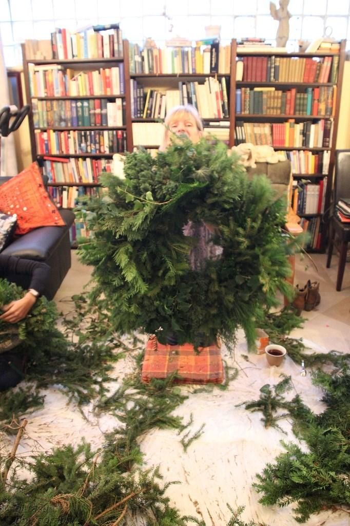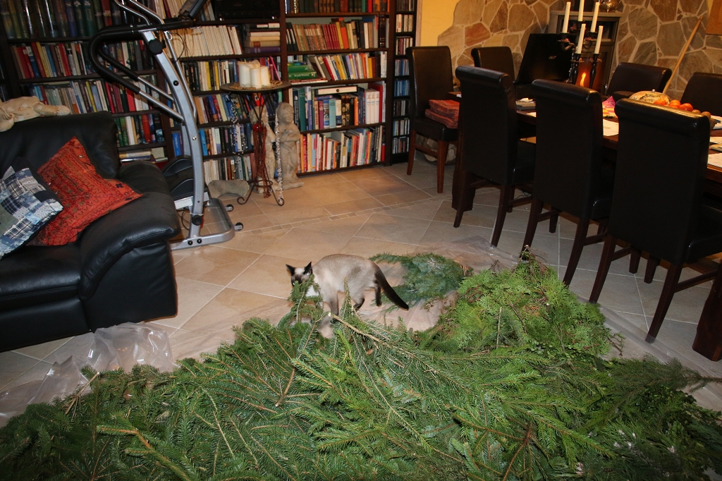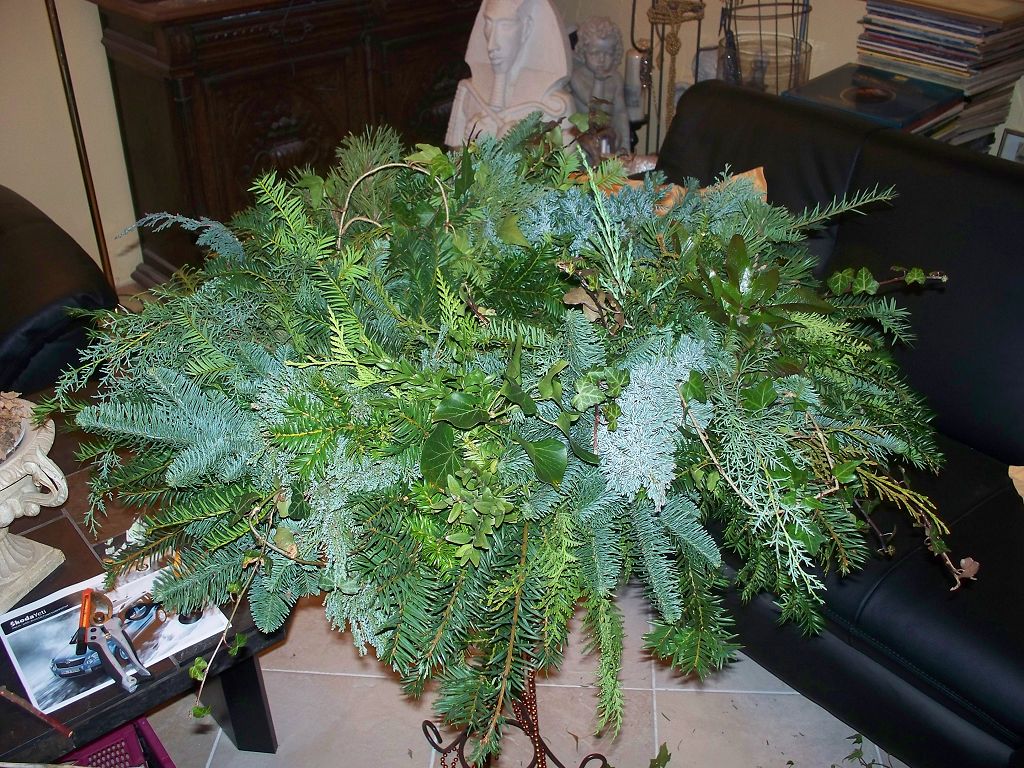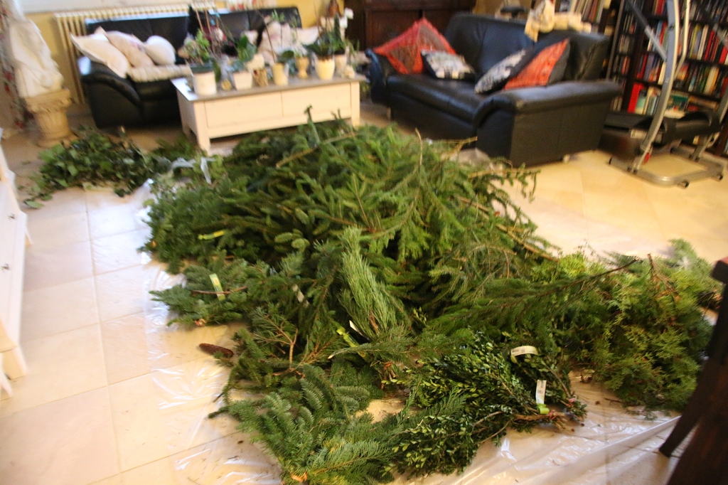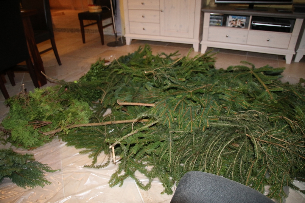 In meinem Wohnzimmer haben wir dann alles auf den Boden gekippt, dazu noch Edeltanne die wir gekauft haben,