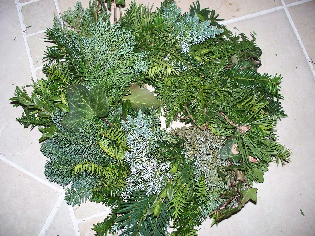 Bux, Tannen, Fíchten, Efeu, Moos und gar alles was es so gibt.