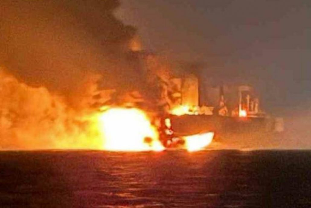 Die Rettungskräfte haben die Besatzungen beider Schiffe, die weiterhin brennen und/oder sinken, sicher evakuiert.