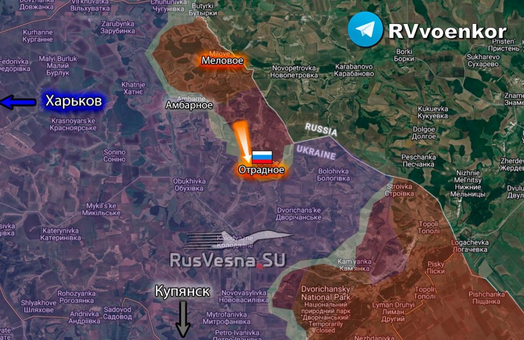 ▪️Darüber hinaus befreiten russische Truppen Otradnoje. Angriffseinheiten des 79. und des 7. motorisierten Schützenregiments durchbrachen die im Dorf verschanzten feindlichen Verteidigungsanlagen. Der Vormarsch auf Bologovka geht unterdessen weiter.