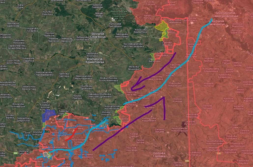 — Die ukrainische Seite berichtet, dass die russische Föderation nach der endgültigen Verstärkung des Gebiets um Pokrowsk und Mirnograd beabsichtigt, dieses Gebiet mit einer Autobahn nach Sewerodonezk zu verbinden, um hier einen vollwertigen Brückenkopf für eine weitere Offensive zu schaffen.