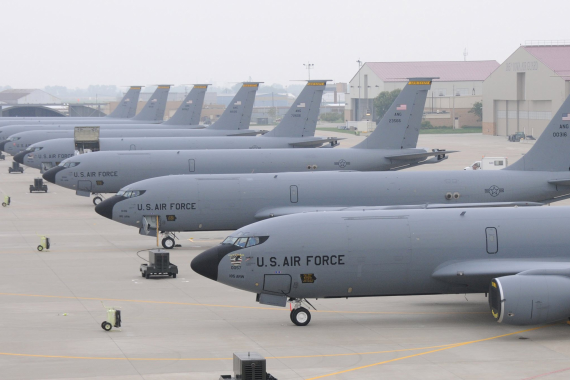 Mindestens acht solcher Tankflugzeuge (wie auf dem Archivfoto oben zu sehen) sind jetzt in der Luft.