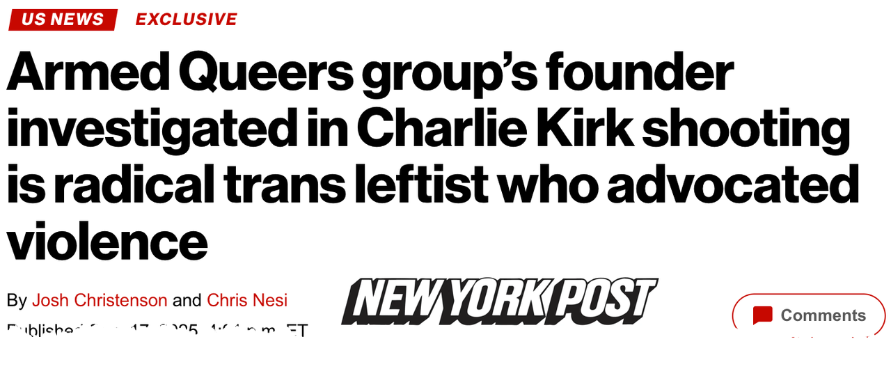 - Gegen Armed Queers SLC wird wegen möglicher Vorkenntnis der Ermordung von Charlie Kirk ermittelt.