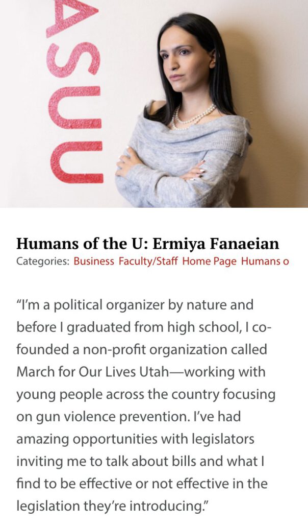 Fanaeian wurde als „Junger Diplomat von Utah“ geehrt.