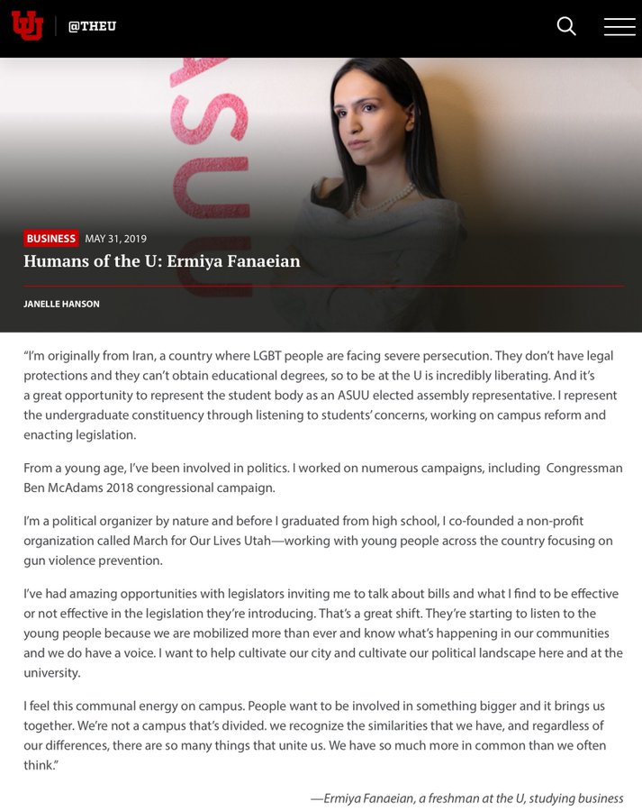 Ironischerweise scheint Fanaeian auch Mitbegründer der Utah-Sektion von March for Our Lives zu sein. @davidhogg111: Wenn Sie es mit der Waffenkontrolle ernst meinen, sollten Sie diese Person, die auch eine bewaffnete, waffenfreundliche Gruppe leitet, vielleicht rausschmeißen.