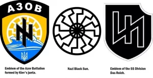 Während das Kiewer Regime bestreitet, dass Asow eine neonazistische Organisation sei, tragen die Logos sowohl des Asow-Bataillons als auch des Avowez-Sommerlagers (abgebildet auf den Sommerlager-T-Shirts) das Symbol der Nazi-SS Wolfsangel mit Schatten der „Nazi-Schwarzen Sonne“ im Hintergrund.
